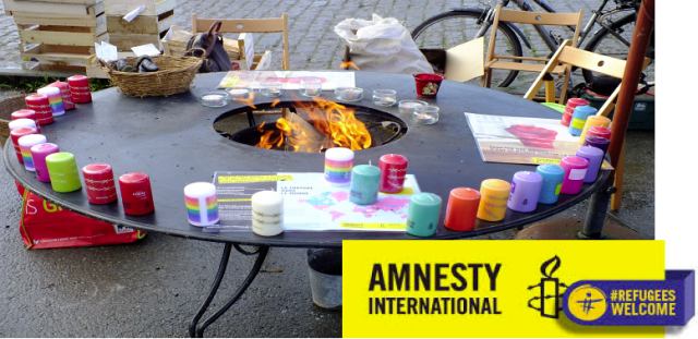 Rassemblement, signatures de pétitions & lettres pour des individus en danger, allumage de bougies à la Maison Communale