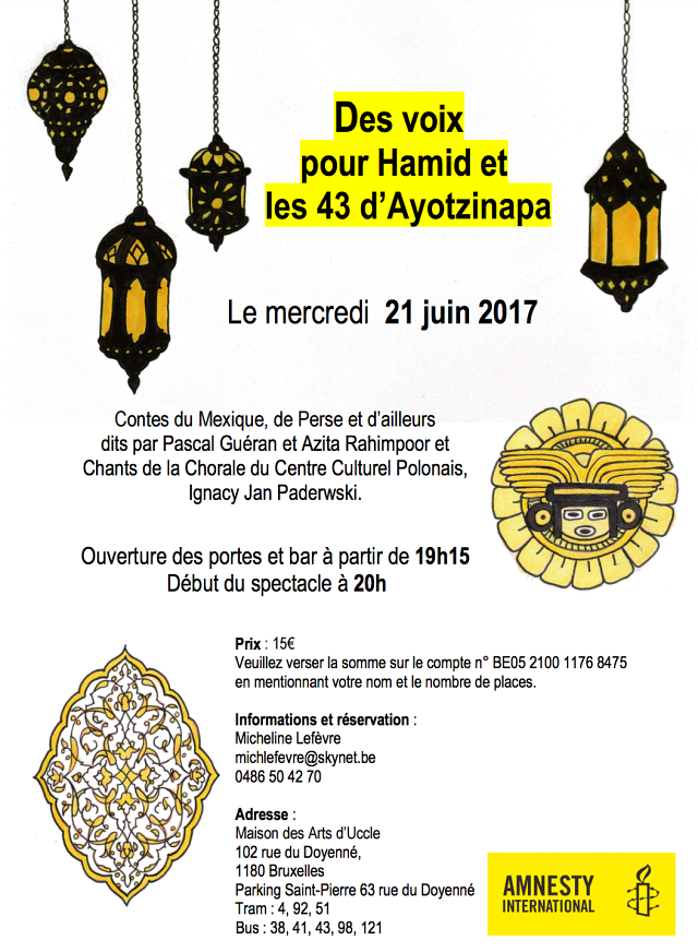 Prix : 15€ à verser sur le compte BE05 2100 1176 8475 en mentionnant votre nom et le nombre de places.