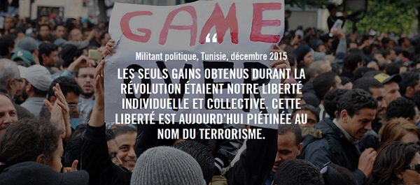 Les Tunisiens adoptent une nouvelle Constitution qui protège de nombreux droits importants, comme la liberté de s’exprimer et de se réunir librement, et interdit la torture. Ils ont également élu un nouveau Parlement et un nouveau président. Les organisations militantes et les ONG se développent.