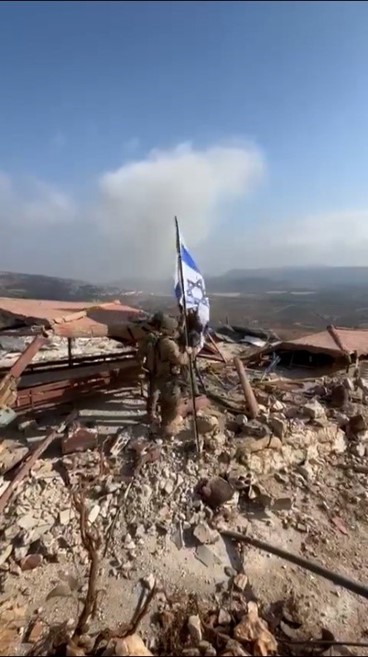 Des images tirées de vidéos publiées sur les réseaux sociaux montrent des soldats israéliens qui hissent le drapeau israélien et détruisent la végétation, les infrastructures et une statue dans le Jardin iranien, à Maroun el Ras.