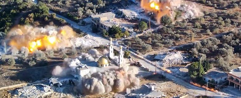 Le 28 octobre, l’armée israélienne a publié une compilation de vidéos filmées dans l’agglomération, montrant notamment des démolitions effectuées au moyen d’explosifs posés manuellement, où l’on voit des soldats détendus et apparemment maîtres de la situation dans le secteur. Cette compilation a été suivie, le 14 novembre, d’une vidéo montrant des preuves de tunnels et d’armes qui auraient été trouvés, accompagnée d’une infographie de la ville « illustrant l’emplacement d’infrastructures terroristes du Hezbollah ».
