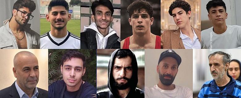 Mohammad Amin Biglari, Ali Fahim, Abolfazl Salehi Siavashani, Amirhossein Hatami, Shahin Vahedparast Kolor, Shahab Zohdi et Yaser Rajaifar ont été condamnés à mort pour « inimitié à l’égard de Dieu » (moharebeh) par la 15e chambre du tribunal révolutionnaire de Téhéran au motif qu’ils auraient incendié une base des bassidjis. Leur sentence capitale a été prononcée le 9 février, moins d’un mois après leur arrestation en janvier.